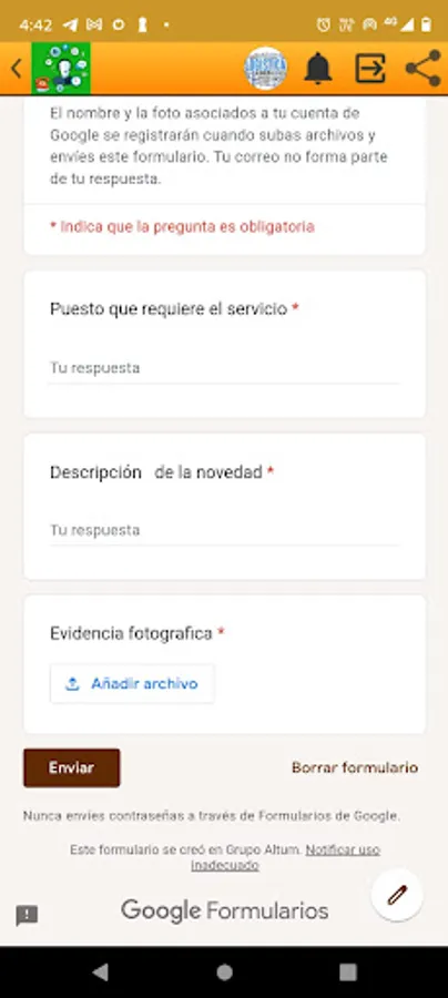 Through this form, maintenance, supports, equipment changes, app updates, scooter inspections, non-lethal weapons maintenance, computer equipment support, printer support, communication equipment support, changes to quartermaster elements, etc. are requested.