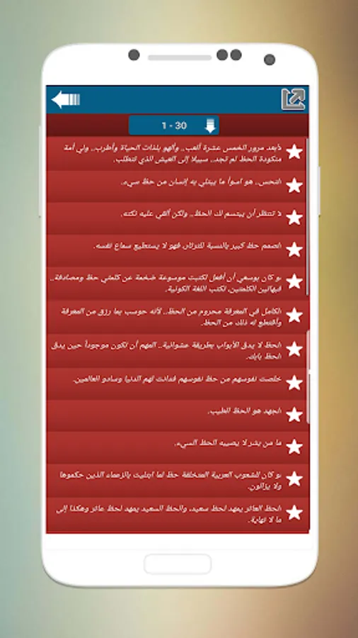 An application that is available on messages and trowels written on it useful words and words about bad luck and how to overcome this ordeal in life, in addition to phrases and talk about luck and lairt slaughter from the quotes of the most famous and wise men in the world we have collected carefully in the form of messages and trowels for the phone short and long.
