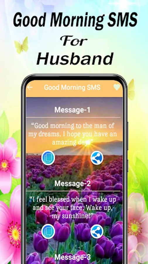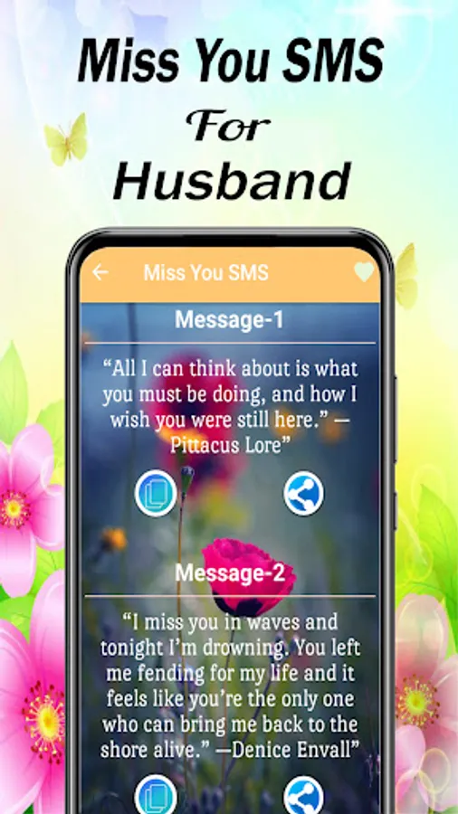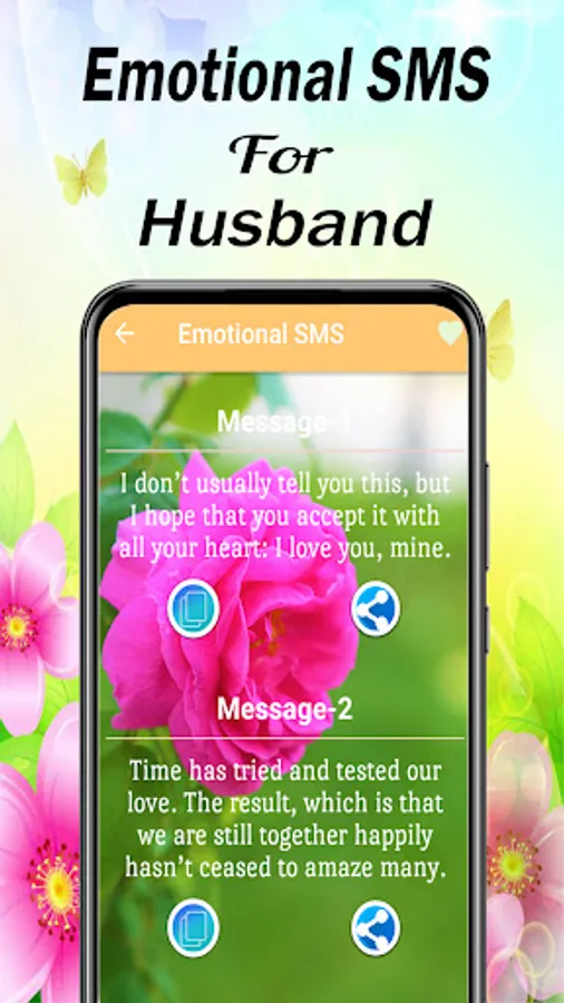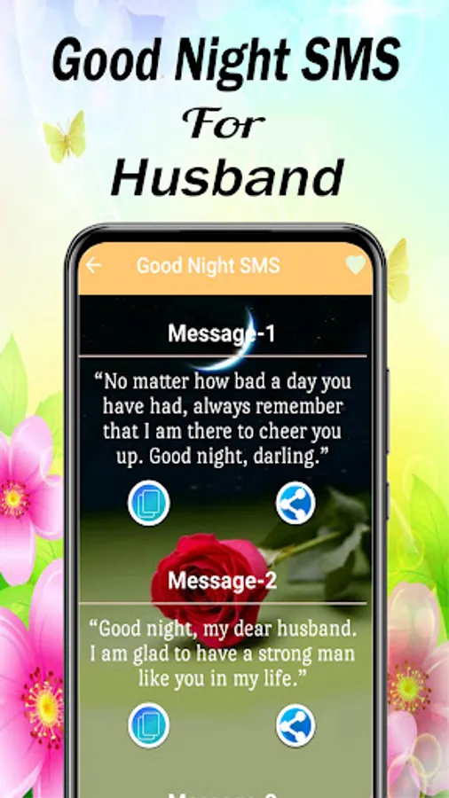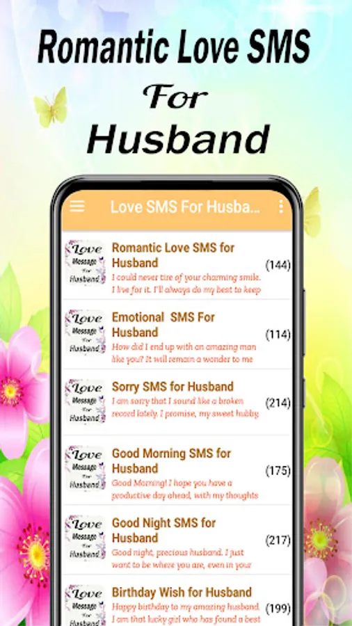 By sending these messages your husband will understand how much you love him. It is possible to express love through him. Without wasting time writing messages, select and copy or share your favorite sweet love messages and send them to your husband. The 'sweet love message for husband' app's sweet love message will help make your life more romantic.