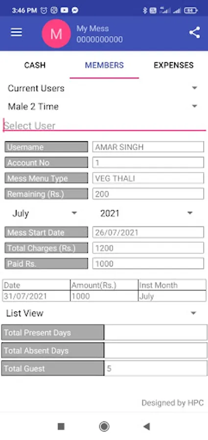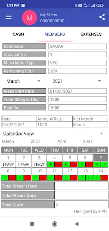 User can view cash, GST and discount record in app, month wise and day wise data available, also user can share data on whatsup or email with others.