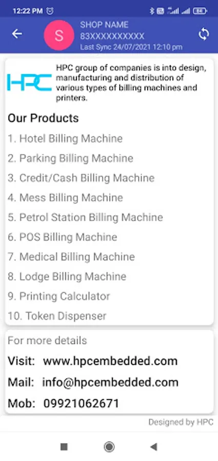 This application provides facility to read and export data of HPC Machine. This is offline application works only with HPC machine. App connect with machine using Bluetooth module and machine share data with app.