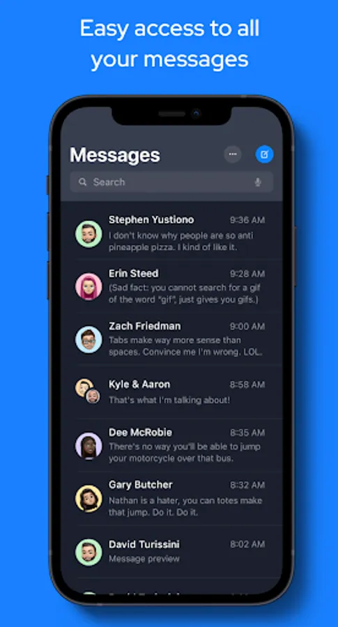 ✔️ Keep up to nine of your favorite message threads at the top of your messages list for a quick coonversation