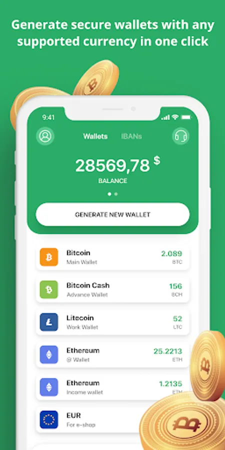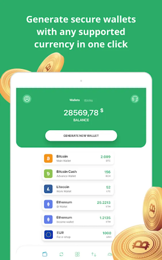 It's simple to accept and make mass payments with Metau. You can generate secure wallets with any supported currency in one click. We have also added IBANs to business wallets for quick and safe money transfers.