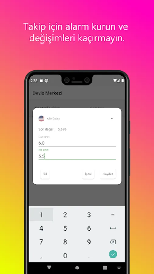 It is prepared for you not to miss the buying / selling opportunities with the alarm screen prepared for foreign exchange. Changes will be displayed as a result of a check with selected intervals.
