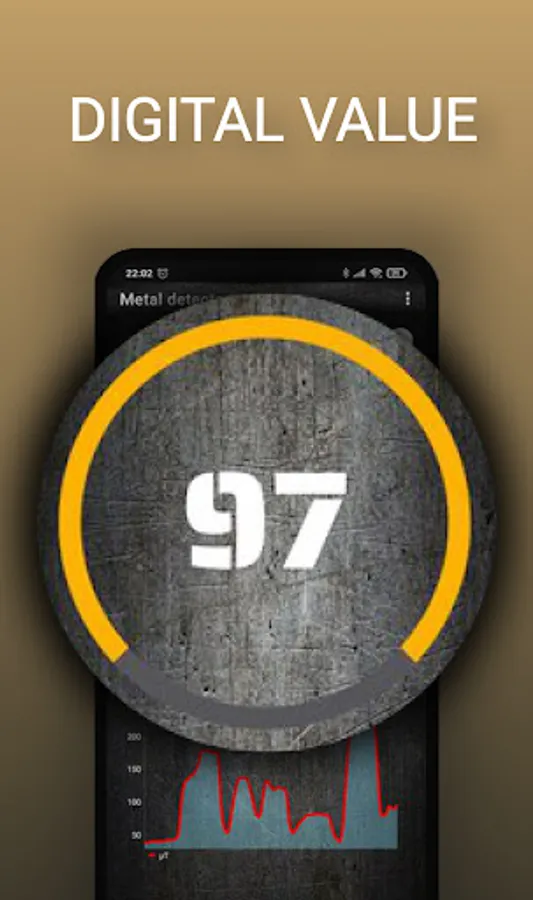 📲 The first time you run/After the download, you will find a short instruction on how to use the app. After that, just move your device in the search area and look after the readings. Increasing of numerical readings and changing the color of the frame from green to yellow or red indicate a field with metal objects. For added comfort, when metals are detected, the application emits a sound, and a graph of measurements is built in the measurements’ history.