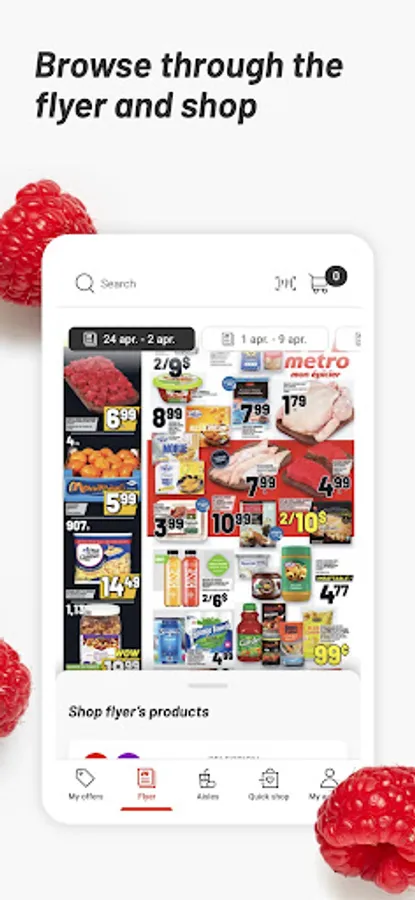 On the My Metro app, you’ll find the same aisles as those in-store (organic groceries, fruits & vegetables, beverages, meat & poultry, frozen, pantry, etc.).
