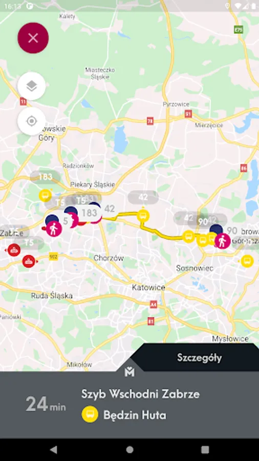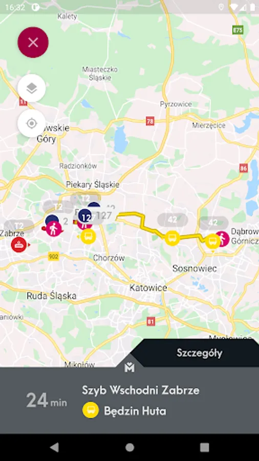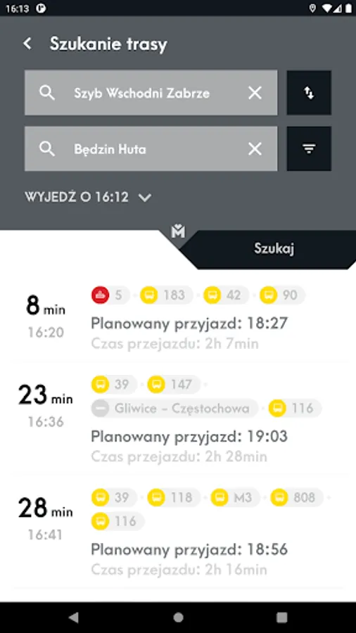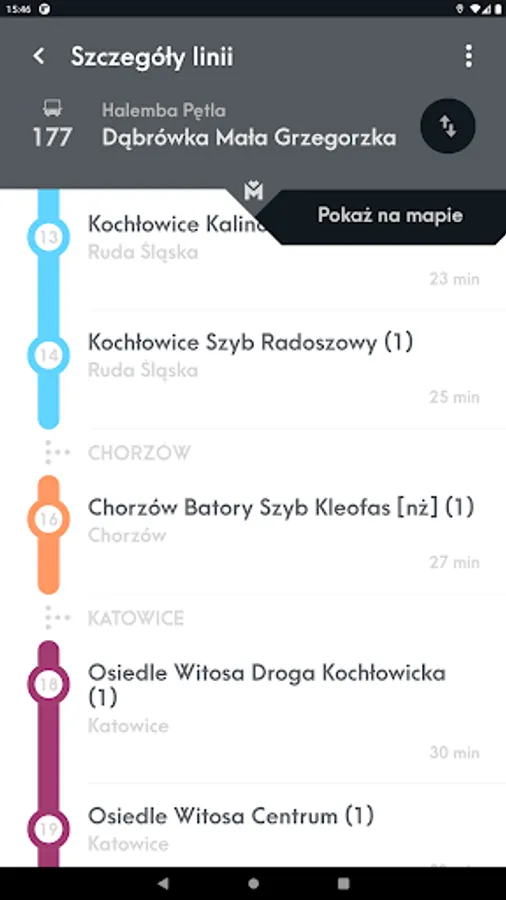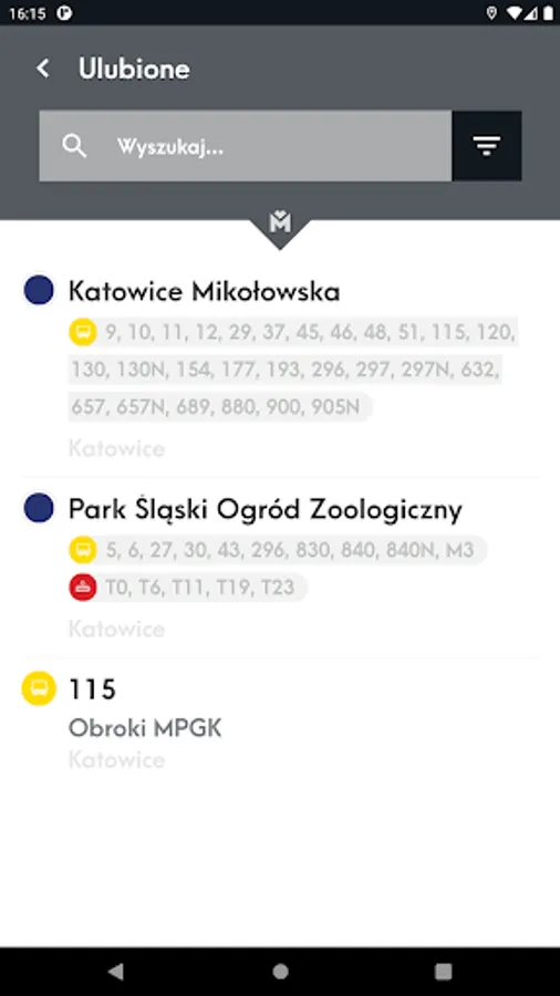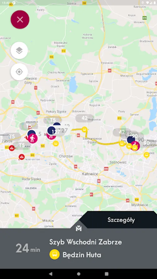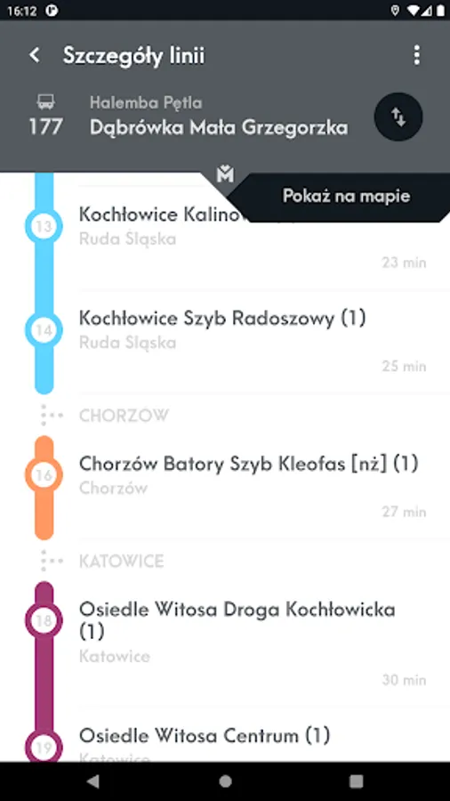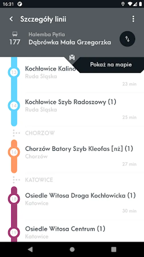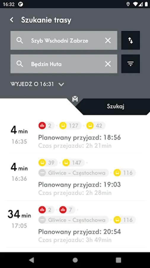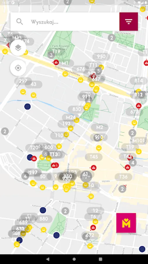 Mobile application presenting the location of vehicles and stops on the map and allowing you to check the actual departure time of vehicles from the stop and search for a connection.