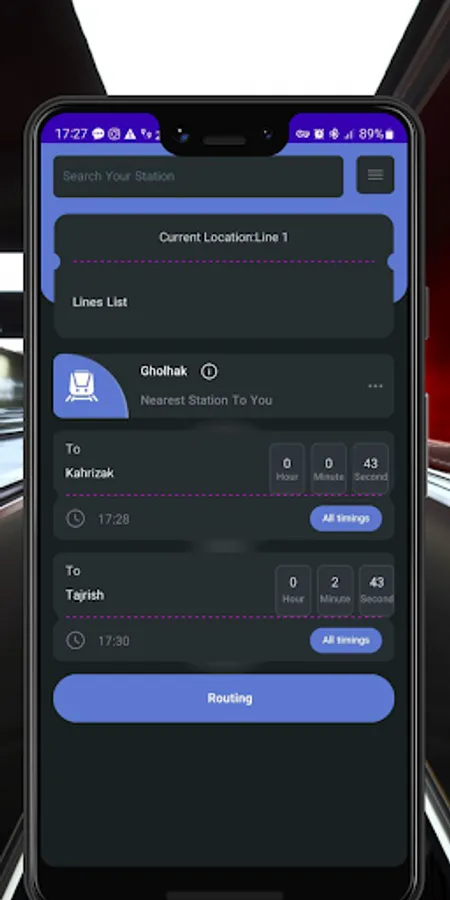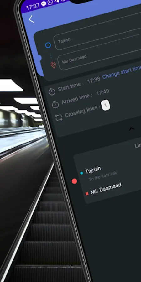 In this regard, after receiving your location, it offers you the nearest metro station and at the same time shows you the nearest metro departure time from that station, as well as the next and previous hours with the counter.