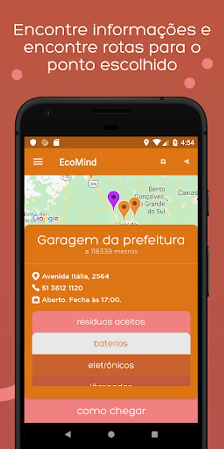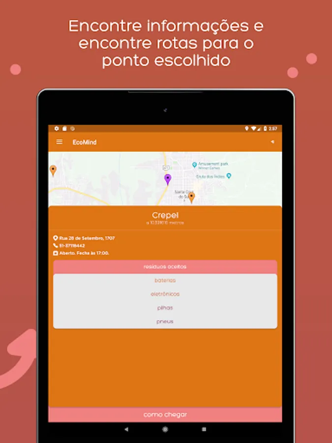 Information such as name of collection point, address, telephone, days and times of office, accepted and responsible waste are available in the application.
