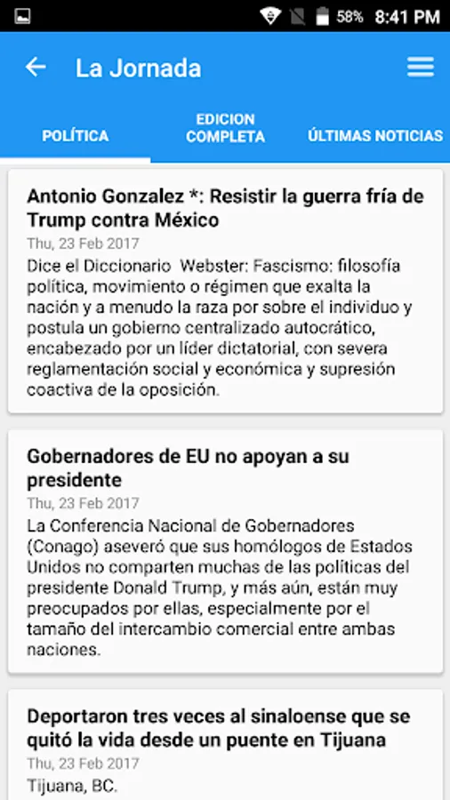 It’s a fast an easy way to read the top headlines from Mexico. With Mexico News you can quickly read the breaking news at any time. It gives you access to the most popular newspapers from Mexico and it’s totally free to Mexico.
