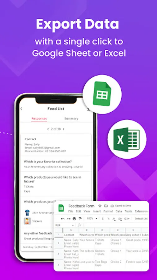 ✓ Download data as PDF , Excel or connect to Google Sheets
