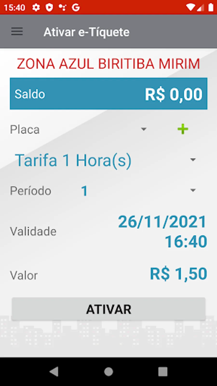 With the acquired credits, the user can, through the ParkingFacil APP, activate the e-Tíquete at the rates and periods regulated by the Municipal Law.
