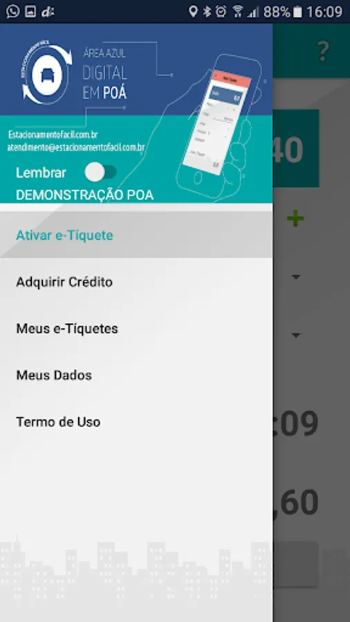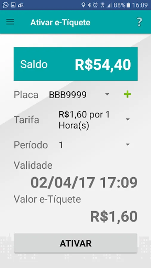 With credits acquired the user can through the APP EstacionamentoFacil activate the e-Ticket for rates and periods regulated by the Municipal Act.