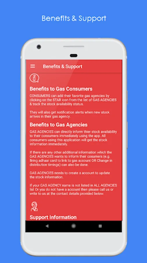 User will be able to easily access all the information for her/his gas agencies in their phone and will be notified using latest notification technology.