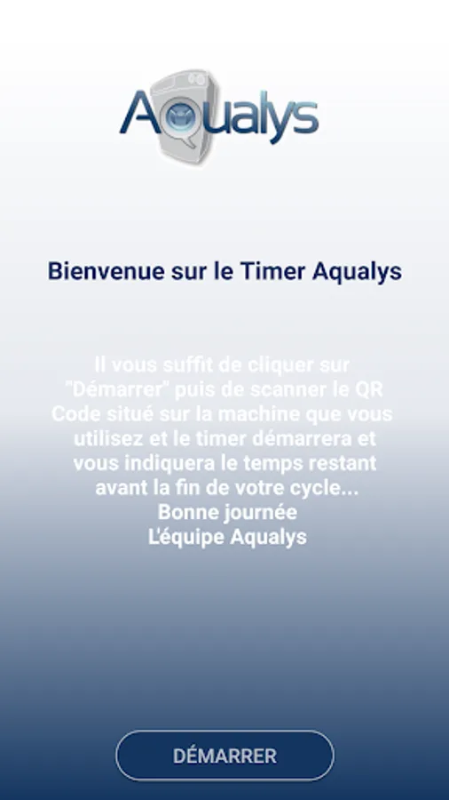 Can be used in laundries Aqualys, Aqualys Timer allows you to scan the QR code Aqualys machine used and have the countdown of the time remaining before the end of the cycle and an audible signal when the cycle is complete.