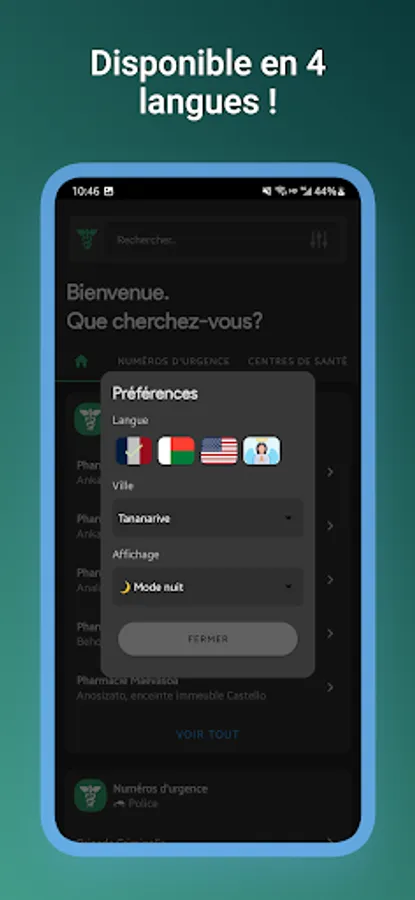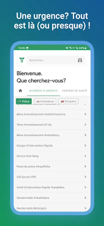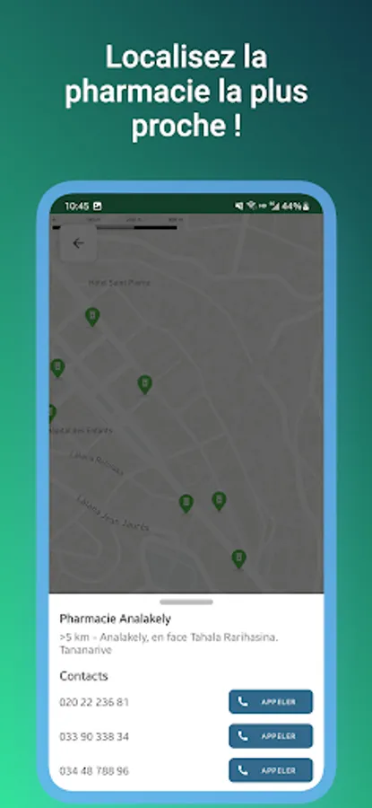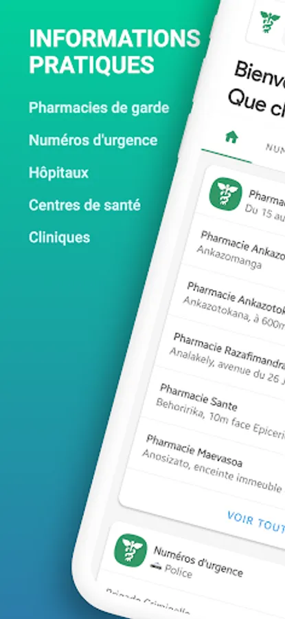 Pharmada is an offline application that allows you to consult several practical information in Madagascar such as: on-duty pharmacies, emergency numbers (gendarmerie, firefighters, ambulances), the location of pharmacies as well as health establishments ( clinics, hospitals, etc.).
