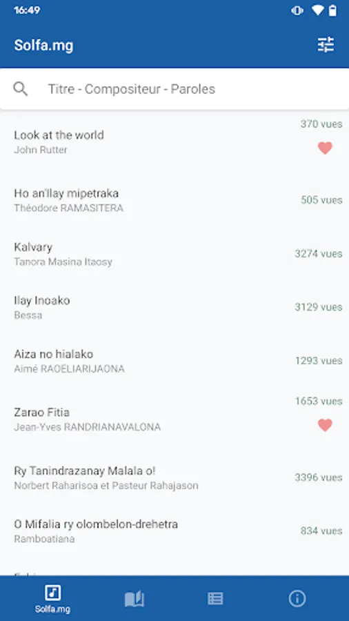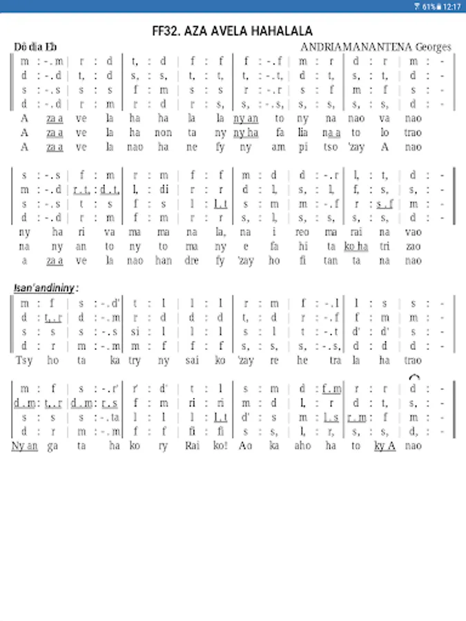The solfa.mg application allows you to consult the scores available on the site www.solfa.mg as well as the Tiona on mobile.
