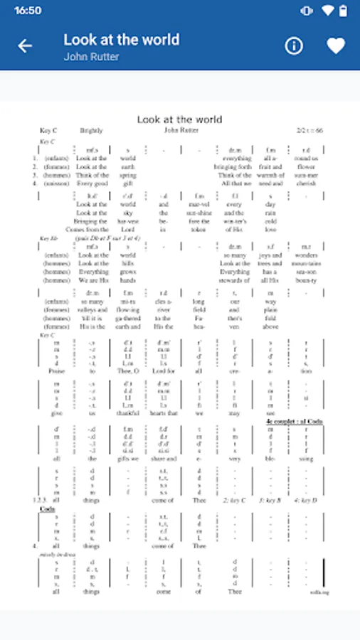 You can thus add the scores and the tiona songs to the favorites list and then reorganize your list, before each worship for example, these elements will then be available for consultation even without an internet connection.