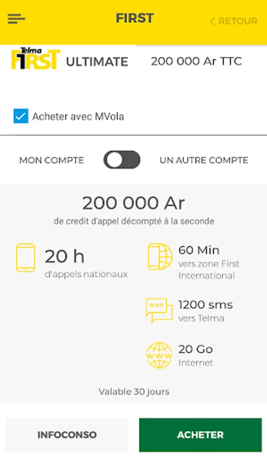 - Purchase credit or offer Telma to buy credit or offer Telma via Mvola or your main account Telma,