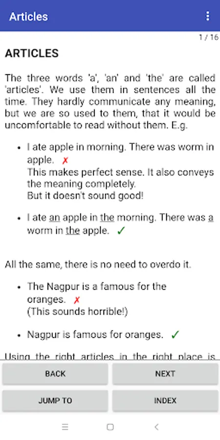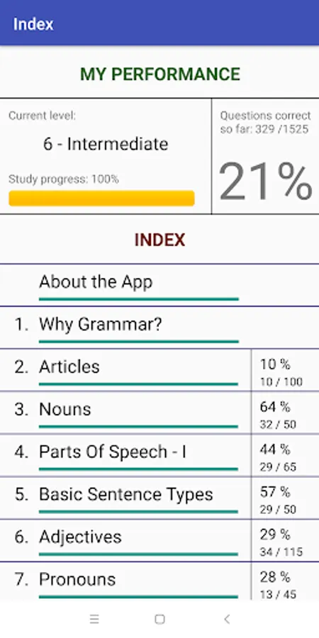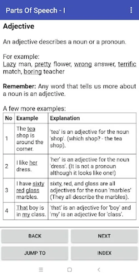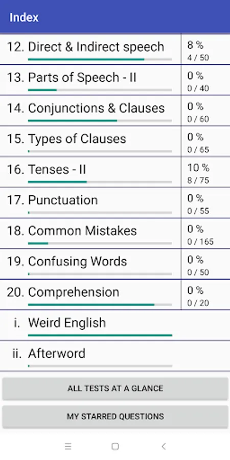 4. Comprehensive app. Covers various easy to difficult topics of Grammar. (Detailed index below)
