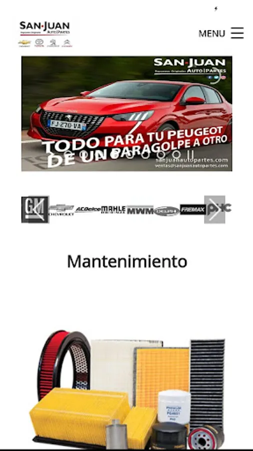We are since 2012 the first website in San Juan, dedicated to the online retail and wholesale of auto parts for the CHEVROLET, TOYOTA, PEUGEOT and CITROËN brands. In addition to having the line of heavy trucks for IVECO, FORD and VW. We also have products for maintenance of the line of road and agricultural machines CARTEPILLAR, LONKING, CUMMINS MOTORS and TRACTORS.