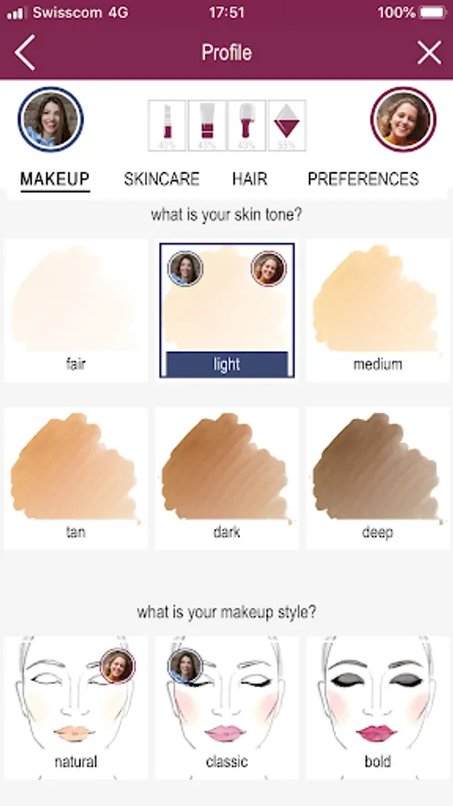 *Beautyprofile (makeup, skin care, hair & preferences)