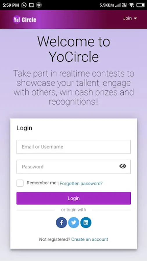 YoCircle (https://yocircle.com) is basically a contest application on social media platform where a user can create profile, page, group, invite friends, like post, share post, comment on post and also can chat with known or strangers.
