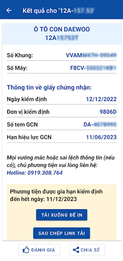 - Information about inspection date, inspection expiration date, testing unit, chassis number, engine number of the car.