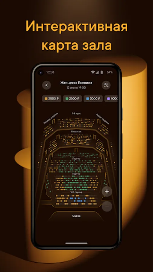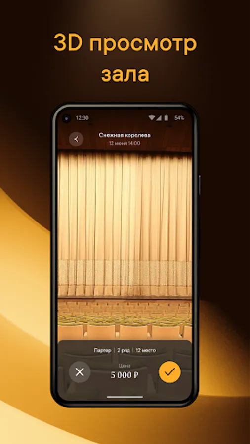 When buying tickets in the application, you have a unique opportunity to check the view from each seat in the hall: choose any seat on a convenient seating chart - and find out what kind of view the stage offers.