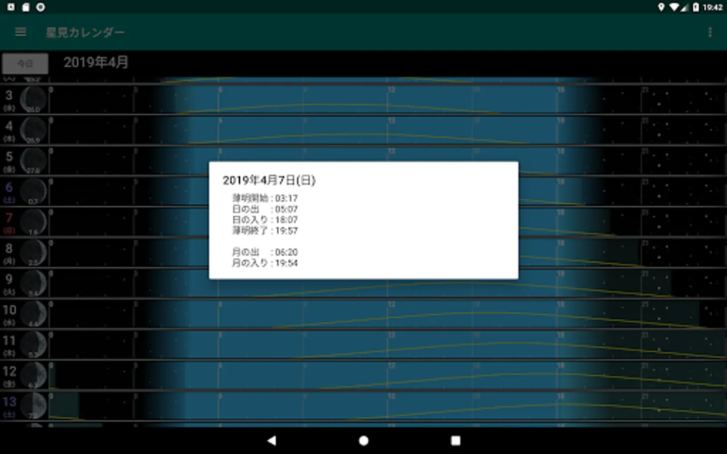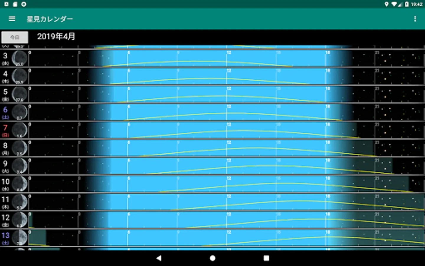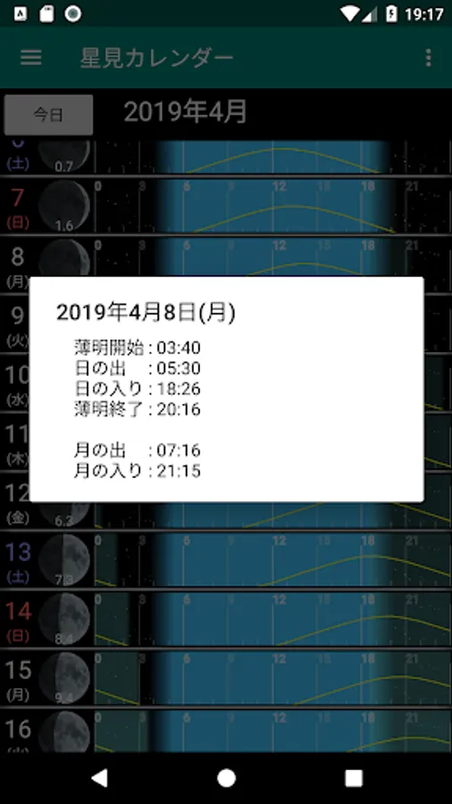 The dark time zone of the night sky can be confirmed at a glance, so please use it as a reference when making a schedule for star observation, astronomical observation and observation.
