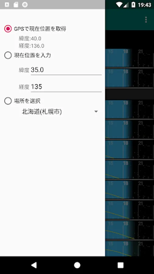 日 の 出 Depending on the location, the time of sunrise, entry, moonrise, and entry will change, so please set the location you want to check. By default, the current position obtained by GPS is displayed.