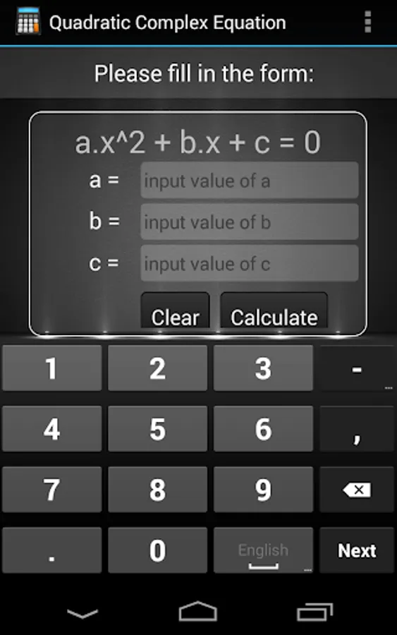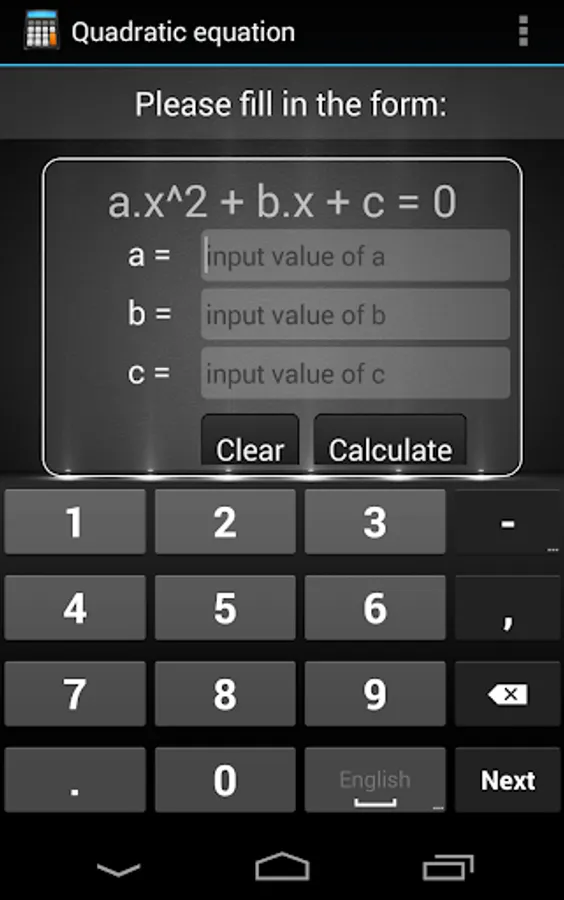 - Calculate Quadratic equation.