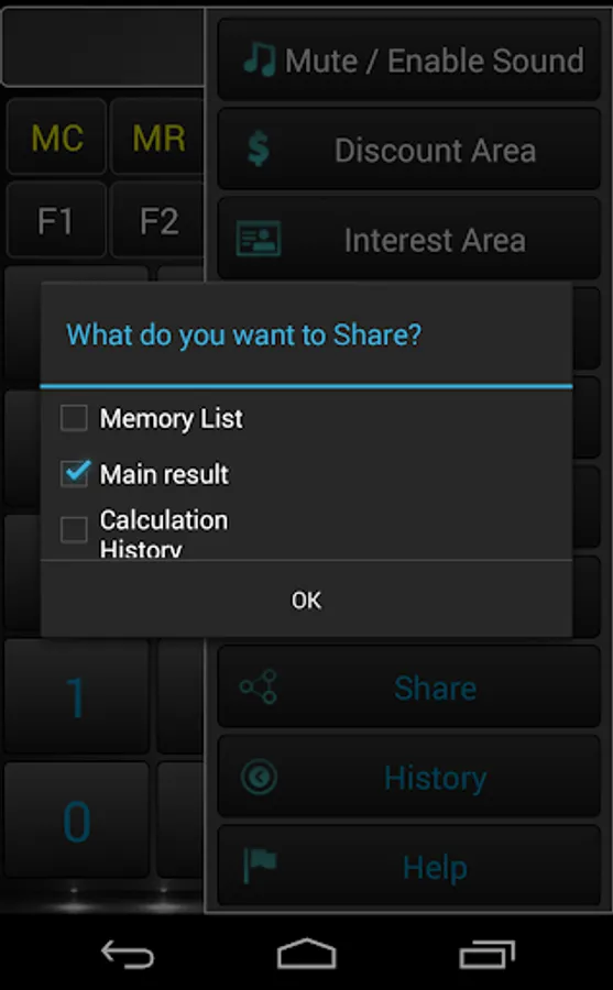 - Share memory list, main result and calculation history.