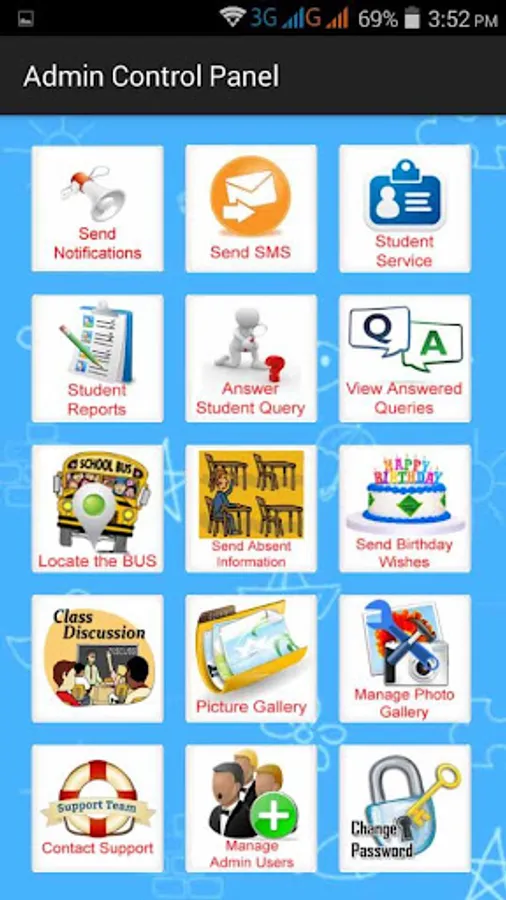 THIS APP IS FOR USE OF MOUNT HILL ACADEMY ADMIN. BY THIS APP ADMIN CAN CONTROL THE SCHOOL THROUGH ANDROID PHONE. ADMIN CAN SEE EACH AND EVERY THING ON SMART PHONE RELATED TO SCHOOL. SCHOOL ADMIN CAN SEND SMS / NOTIFICATION / CIRCULARS TO THE STUDENTS. ANY MANY MORE OPTIONS TO THE ADMIN TO TAKE CONTROL OF THE SCHOOL.