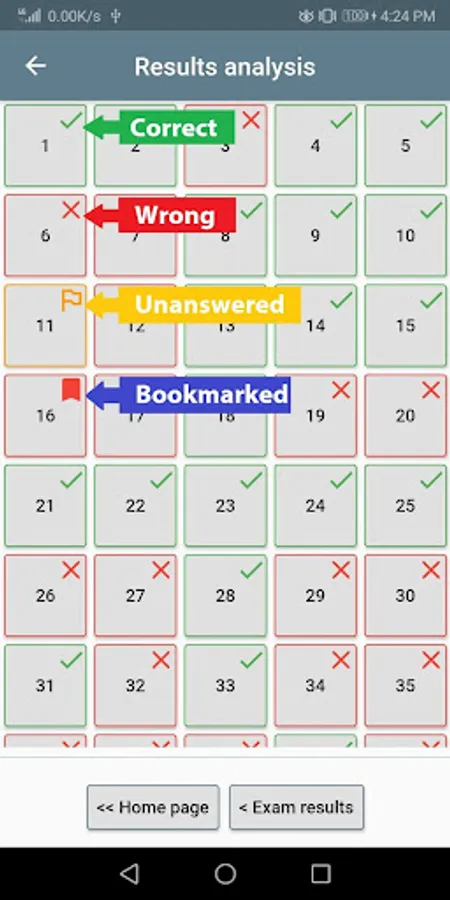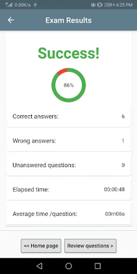 After finishing answering all questions, you will be able to review your answers and see which questions were correctly answered and which ones were not.