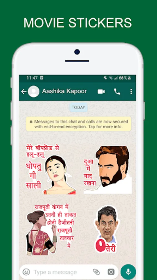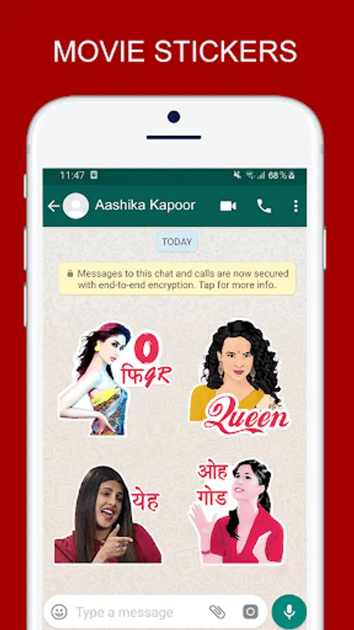 Send blockbuster bollywood stickers for whatsapp. Share cool filmy dialog on whatsapp group chat and increase your stardom.