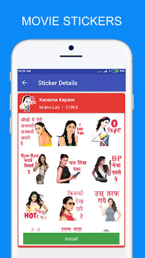 Surprise your friends and family member by sending beautiful celebrity stickers of hindi film industry.
