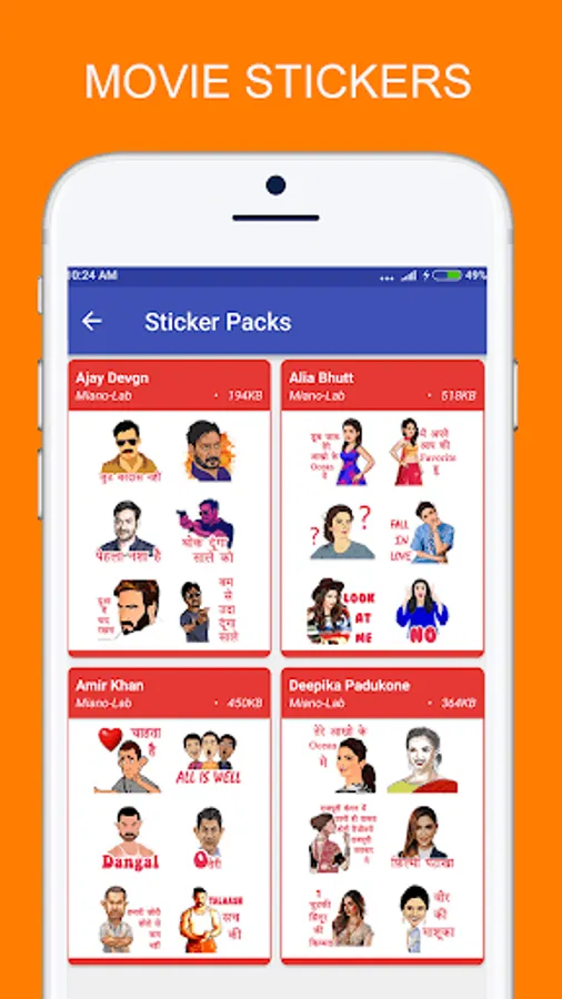 We have new bollywood movies stickers and also old hindi movie stickers for whatsapp.
