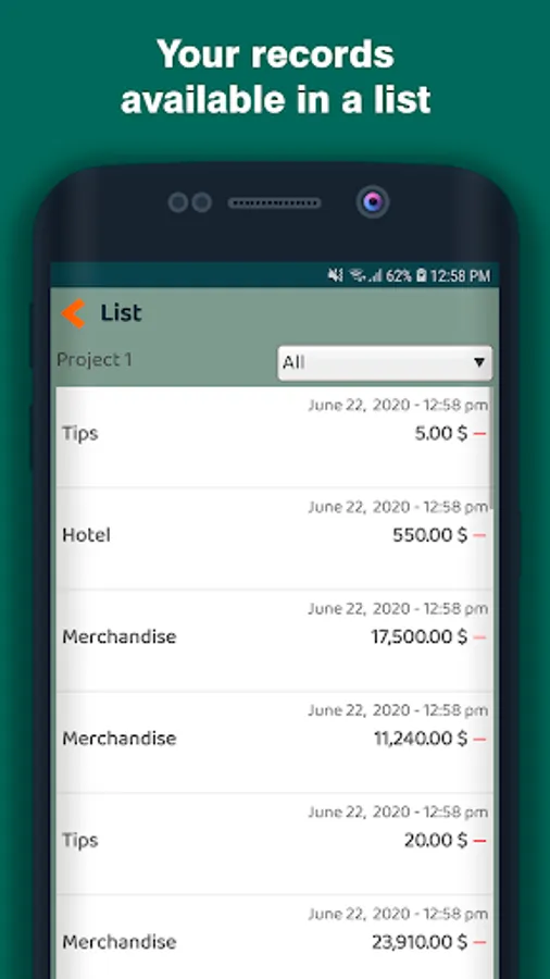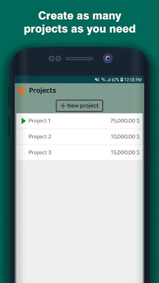 * Each project can have an initial balance, a balance will indicate how much money you have left.