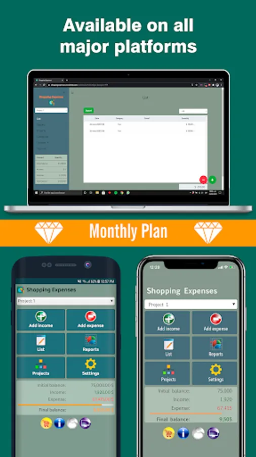 Shopping Expenses is a multi-platform application, designed to manage the expenses of your projects, it is free but you can get your maximum potential by purchasing the monthly plan.
