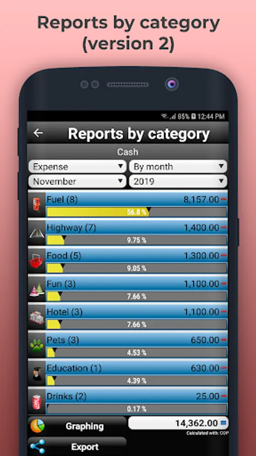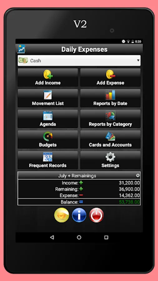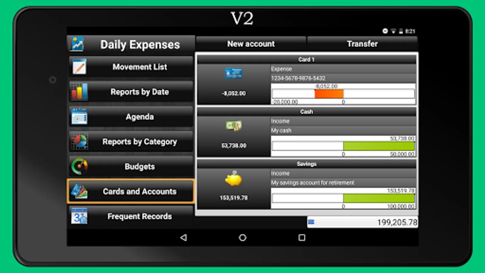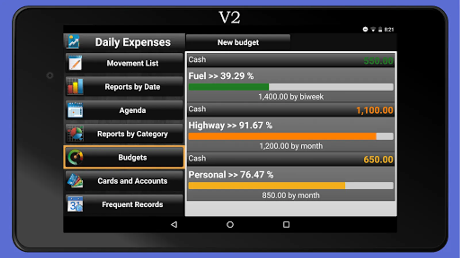 Daily Expenses 2 - Eliminates advertising, allows you to export your reports and list of movements, access to create and modify accounts. You can access to reports by category, agenda and budgets. Create and retrieve backups of Dropbox, Google Drive and Gmail.
