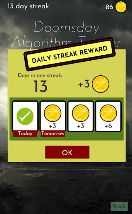 This brain trainer for children and adults will explain the different steps and gives simple assignments to train yourself in memorizing specific dates or to practice simple calculation steps. Play this app every day to master this simple algorithm, that can be learned within an hour.