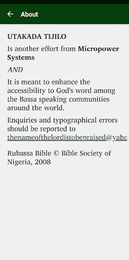 This is Bible in Bassa language and it is meant to enhance the access to God's word among the Bassa people around the world.