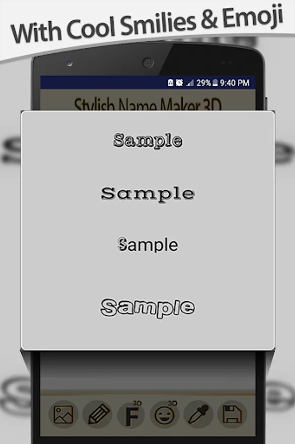 You will find many amazing 3d fonts so you can write your own name and baby names in different unique 3d writing styles.can add 3d smilies and emoji,name writing app.