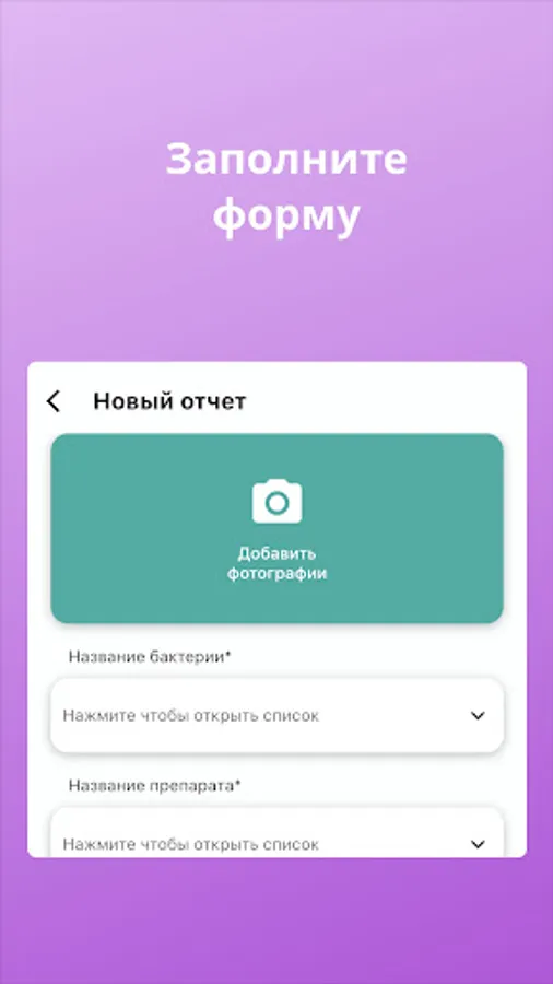 The application makes it easy and simple to create a study report, add a photo of a Petri dish and get feedback from microbiologists.