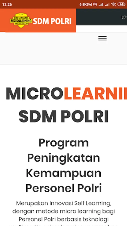 Self Learning Innovation, with micro learning methods for police personnel based on multimedia technology, microlearning is a way to teach and deliver content in the form of small pieces, very special and essential. Learners are controlled by what and when they learn.