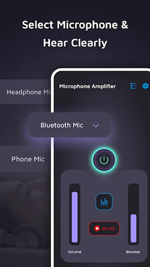 Want to hear clear and amplified sound through a device mic, headphone mic, and Bluetooth mic?