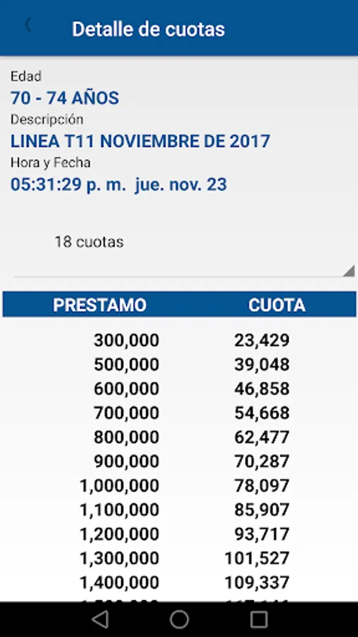 - Simulates an amortization table from 12, 18, 24, 36, 48, 60 and 72 installments with monthly periods up to $ 30,000,000 maximum investment.