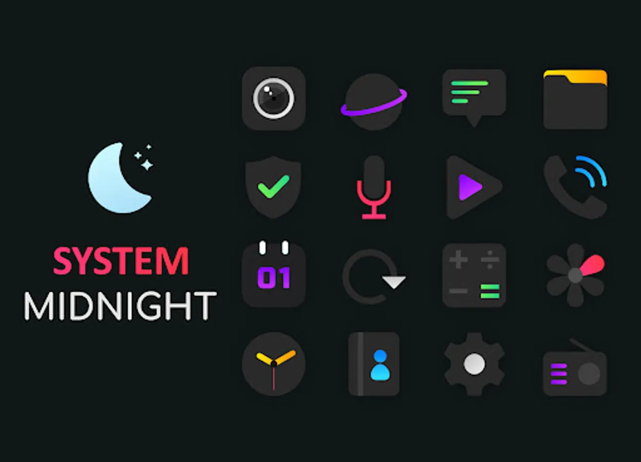 * Midnight icons are specifically designed for those who love dark wallpapers and setups.