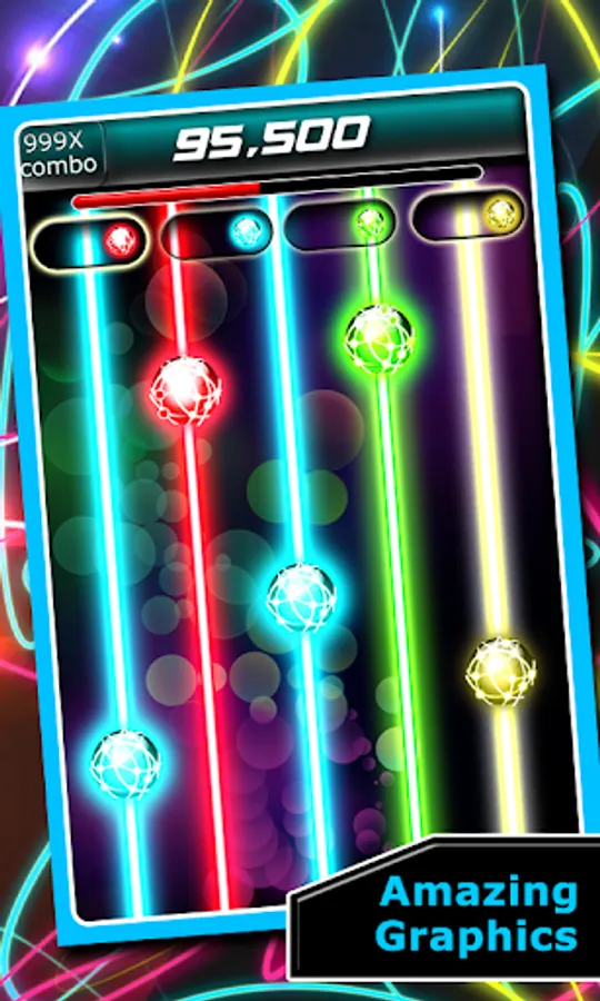 The Mystical spheres of florescent balls come from another world, and your challenge is to be fast to smash the right color balls bouncing on your screen in lines, at the right time.